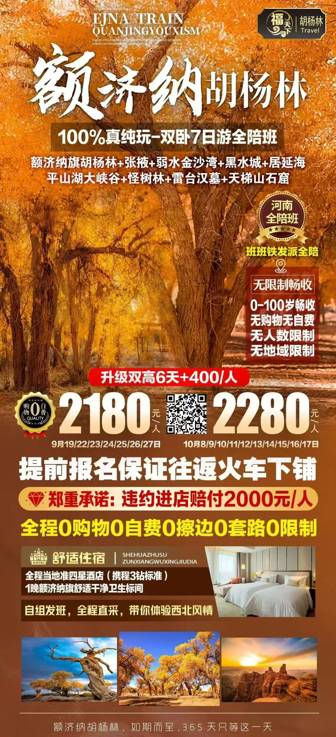 金秋额济纳胡杨林双卧7日游-全程0购物0自费0擦边0套路0限制,真纯玩,若进购物店赔付2000元/人