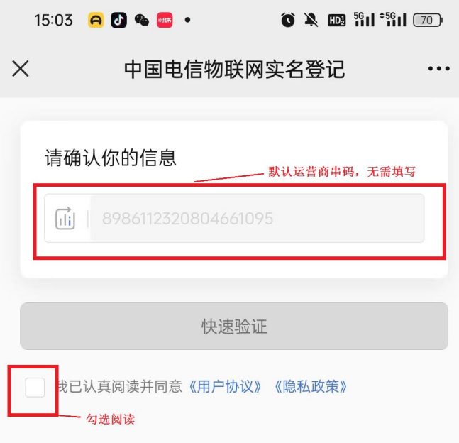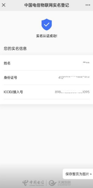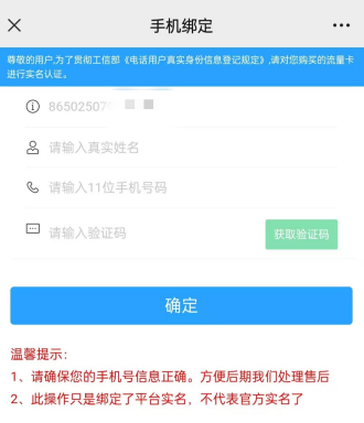 6、点击“实名登记”后,进入“XX 物联网实名登记”页面。