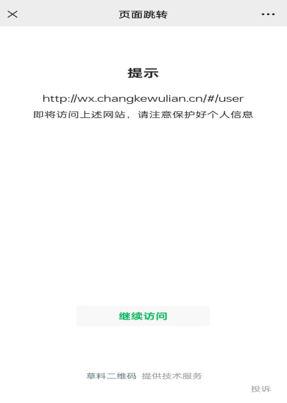 2、扫码后进入页面跳转提示页,点击页面下方“继续访问”按钮。后跳转到设备登录页。