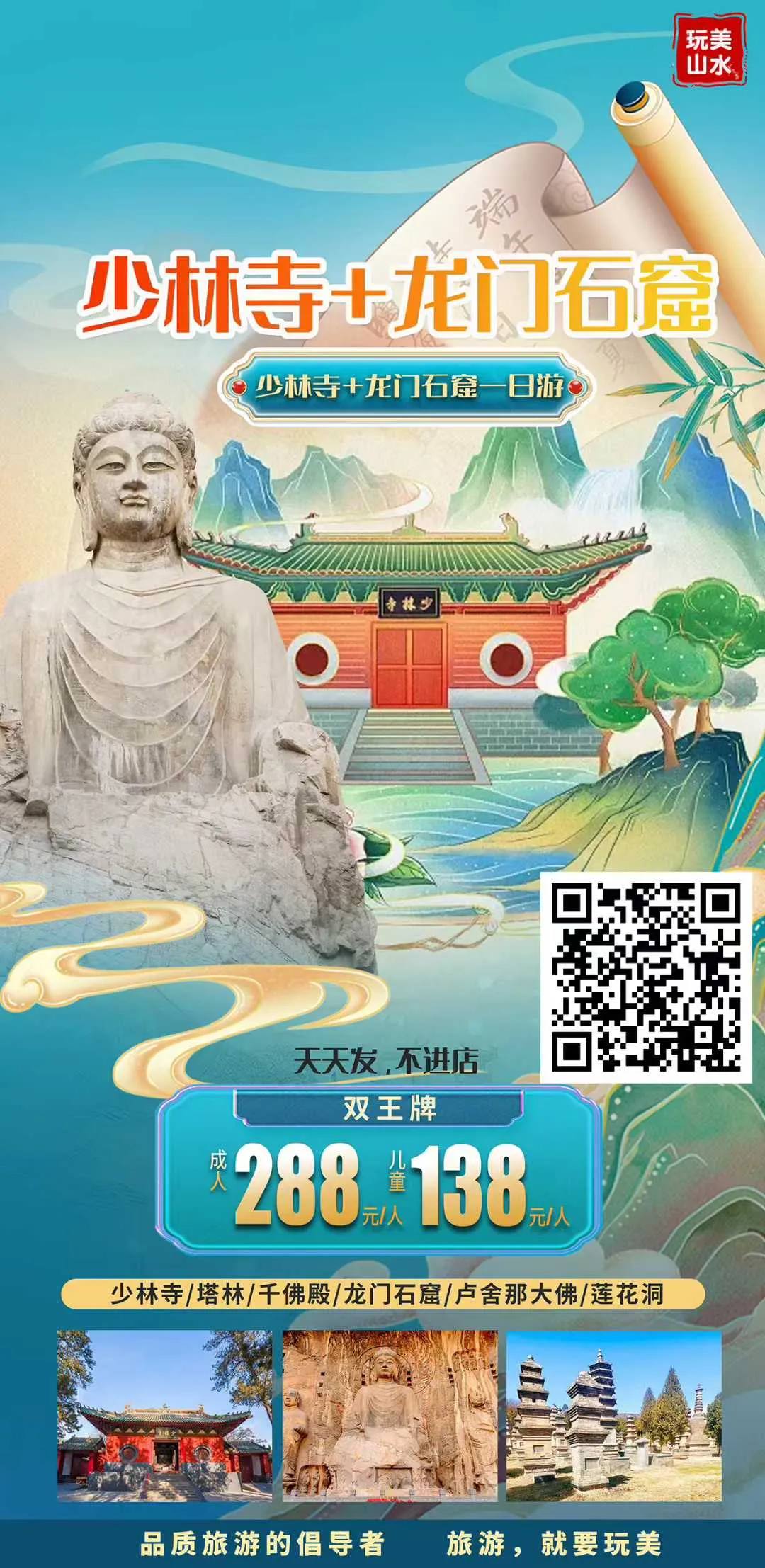 【少林寺+龙门石窟】一日游,郑州出发->登封少林寺+洛阳龙门石窟一日游,天天发团,成人:288元/位,儿童138元/位